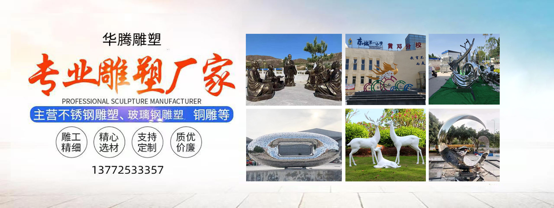 公司拥有专业的雕塑艺术家、实践丰富的雕塑师、敬业的员工,产品已形成雕塑、金属结构件、园林小品雕塑、工艺品几大系列,广泛适用于城市广场、公园、校园文化、工矿企事业单位、酒店别墅、医院、小区住宅等雕塑工程。